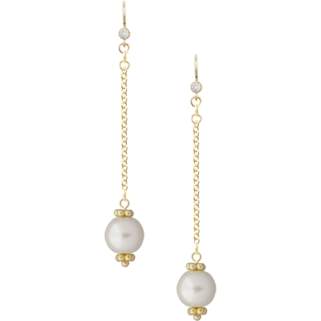 華奢なゴールドチェーンと上品なパールを組み合わせたロングピアスです。