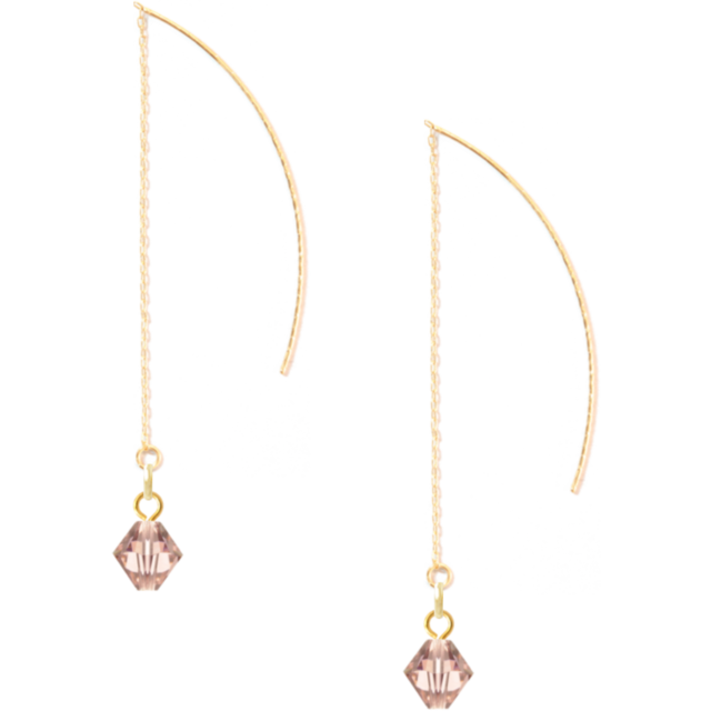 華奢なゴールドラインと、揺れるピンクビジューが上品な印象のピアスです。