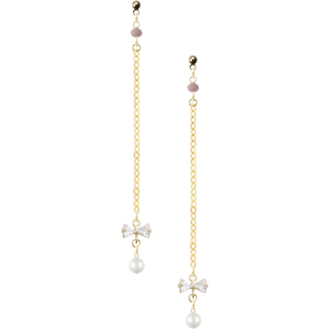 #ピアス #ロングピアス #揺れるピアス #チェーンピアス #パールピアス #ピンクピアス #ガラスビーズ #リボンピアス #ゴールドアクセサリー #上品アクセサリー #大人可愛い #ハンドメイドアクセサリー #monomy
