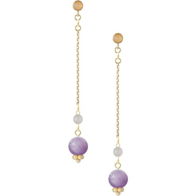 天然石ラベンダーアメジスト×ムーンストーン揺れるピアス 上品ゴールド