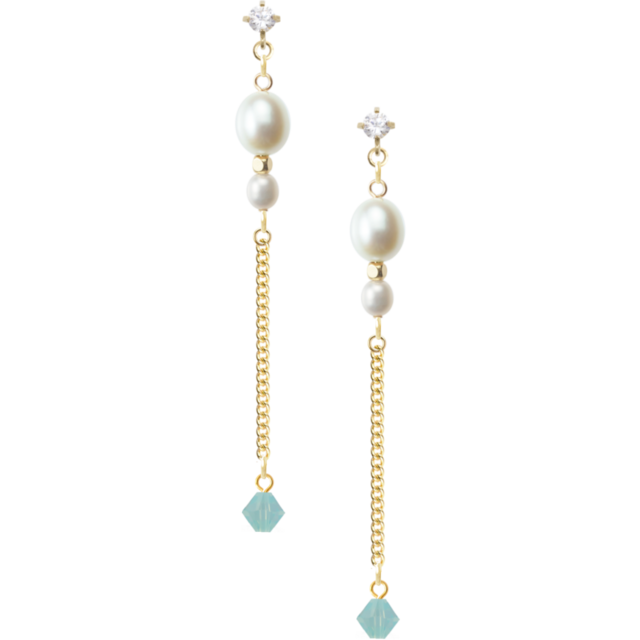 淡水パール×スワロフスキー揺れるロングピアス 上品ゴールド